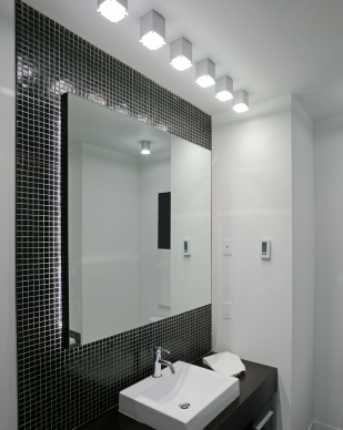 Nella zona intorno allo specchio, il bagno necessita di una forte illuminazione puntuale. Questa può essere ottenuta in vari modi: