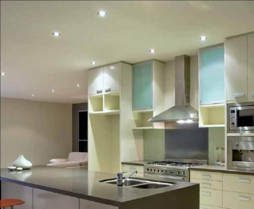 In cucina l’illuminazione generale deve provenire da una lampadina di almeno 100 watt di potenza (parametro che può variare a seconda delle dimensioni dell’ambiente), da sistemare ad almeno 150 cm dal top.
